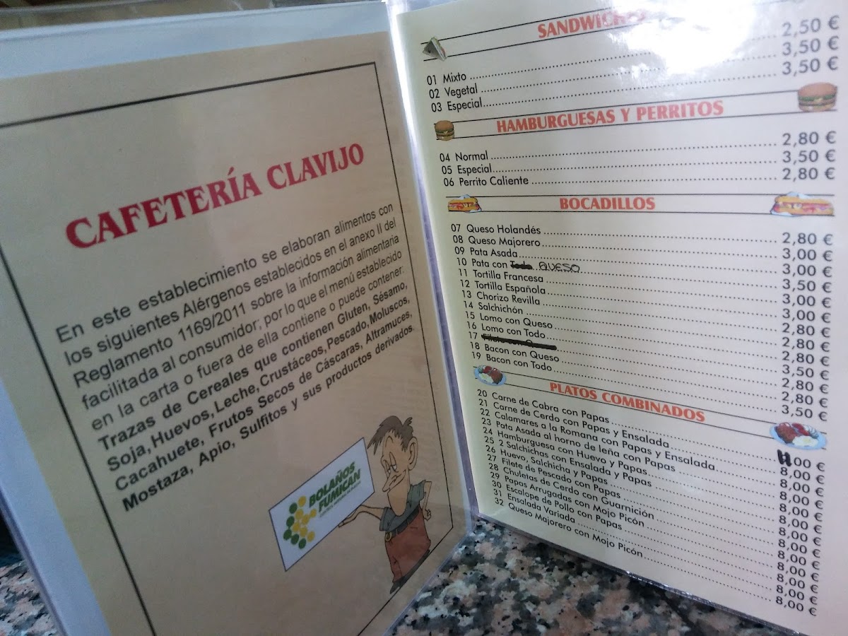 Cafeteria Clavijo Menu